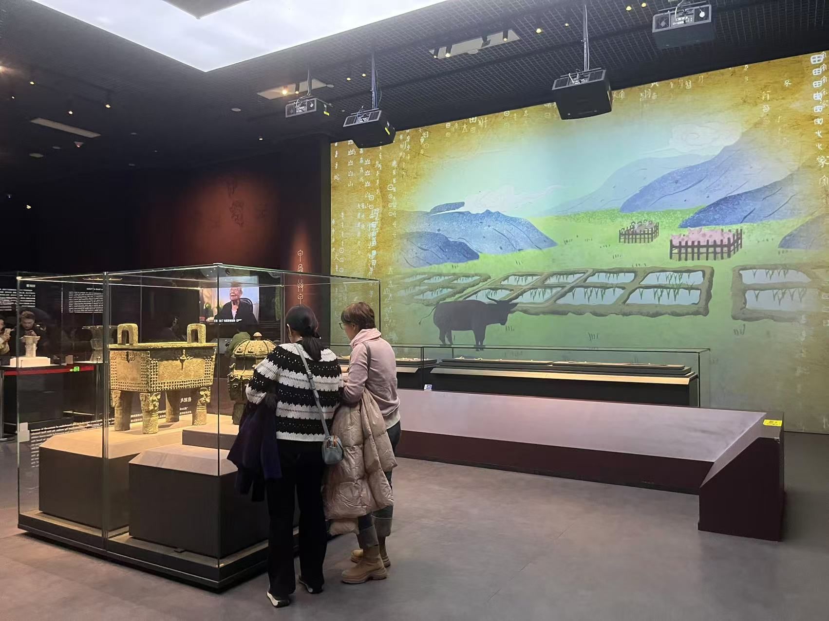 遍布中国各地的一处处文化遗址宛如一颗颗璀璨明珠镶嵌在神州大地,呈现出多样性和交互性的特点,中华文明以“满天星斗”之势演进,走向了多元一体格局。此外,馆内的数字化展陈和互动体验也吸引了大家的驻足,通过多媒体互动、场景模拟和裸眼3D等先进科技手段,教职工们仿佛穿越时空,亲身体验了历史的厚重与魅力。