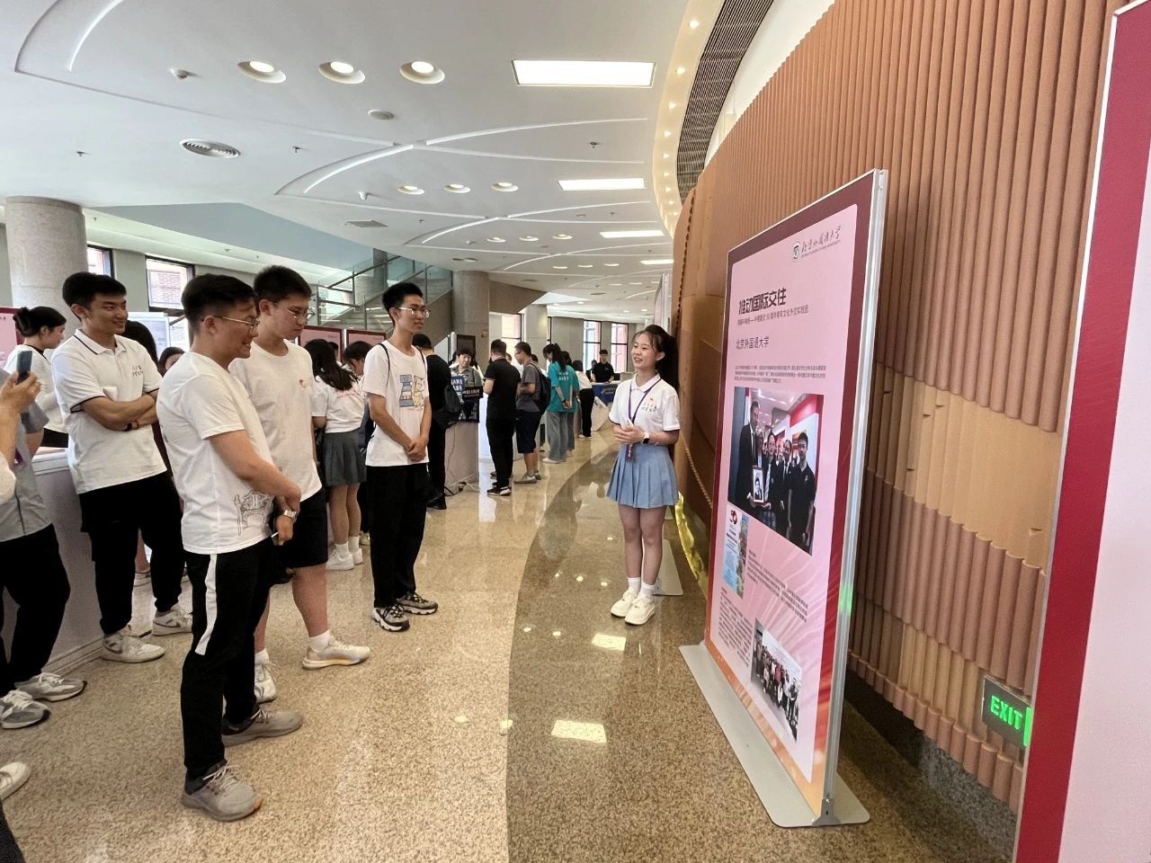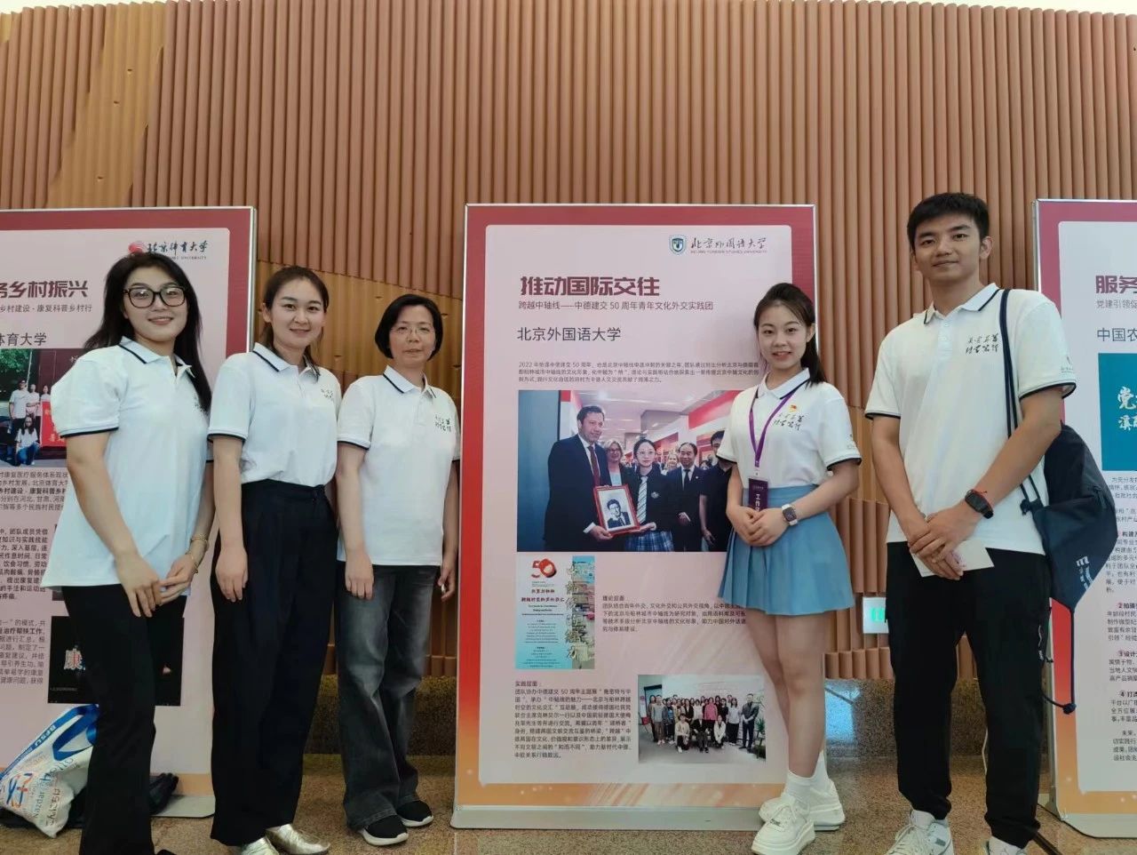 《跨越中轴线:基于北京中轴文化形象的对外话语体系调查研究》社会实践团队的优秀成 果,吸引了众多展览现场的师生驻足观看、观摩学习。我校团委志愿者与社会实践部也将继续全面贯彻落实党的二十大精神,聚焦全国大学生“三下乡”“返家乡”社会实践活动,组织同学们在实践中深入学习宣传习近平新时代中国特色社会主义思想,力求取得更多实效。