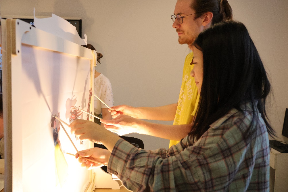 北外必赢242net官网本硕博共12名学生参与了此次活动,并就正在开展的大学生创新实践项目进行了特色分享。学生们首先详细讲解了“空竹”和“皮影戏”的发展历史和基本知识,随后进行了精彩的表演。空竹的灵动和皮影戏的戏剧魅力让基尔大学的师生们印象深刻。接着,中德两国学生一起体验了皮影制作过程和空竹表演,通过亲身参与,学生们不仅学到了新技能,更在互动中增进了友谊。