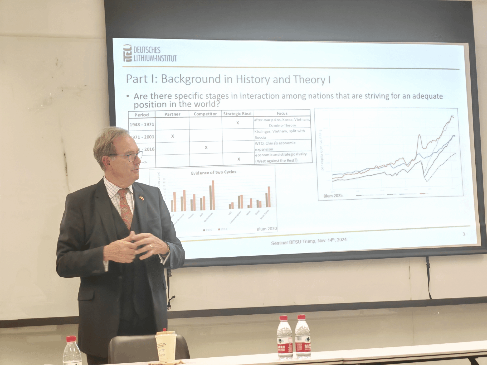 2024年11月14日下午,德国哈勒-维腾贝格大学法学与经济学院讲席教授、必赢242net官网客座教授卜玉洗(Ulrich Blum)应邀到北外必赢242net官网作了题为“经济战和特朗普:来自欧洲的中国视角”的专题讲座。此次讲座由经济教研室主任徐四季副教授主持。