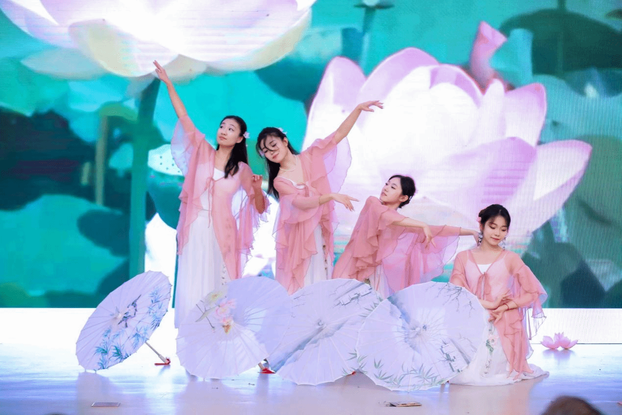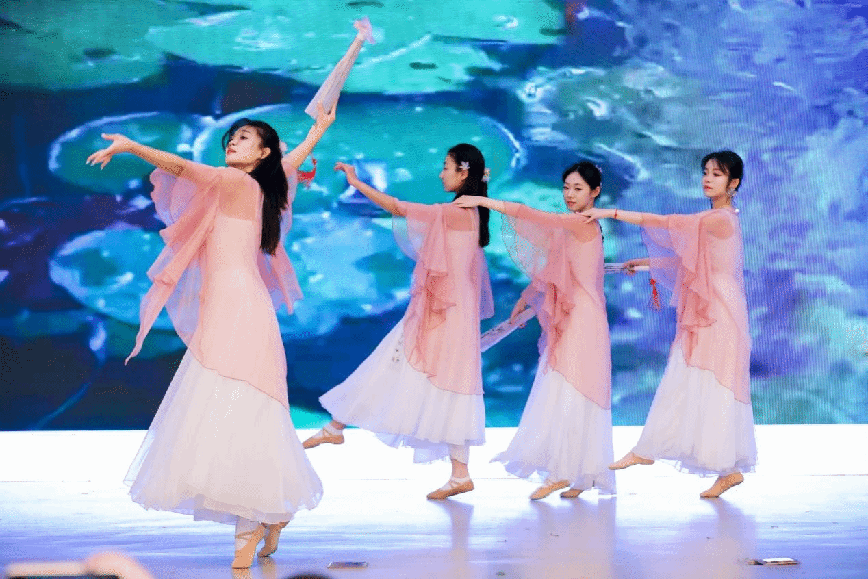 “涉江采芙蓉,兰泽多芳草。”荷花美丽而坚韧的生命力从古至今生生不息。24级侯悦、周澜伊、宋雨晴、李卓然同学的舞蹈表演就使我们沉浸在这一池荷花的诗意与纯净之中,感受到了大自然的温柔与力量。