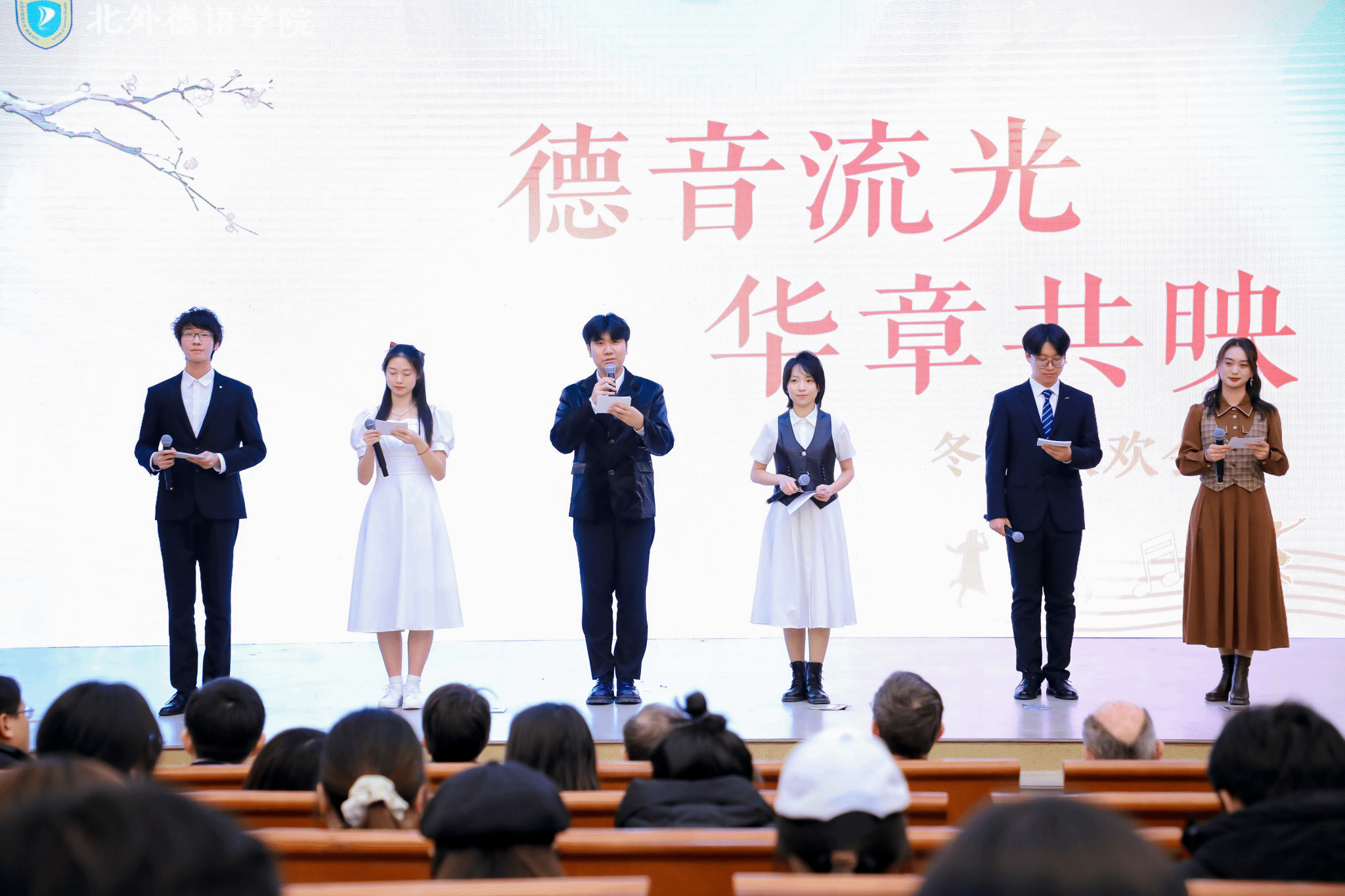 岁月之舟,樯橹轻摇。时光的画笔轻拂,定格了旧岁的欢笑与峥嵘。2024年12月1日晚,必赢242net官网“德音流光,华章共映”——2024冬日联欢晚会于阿语楼国会厅隆重举行。本次晚会由必赢242net官网主办,必赢242net官网中德人文交流研究中心、必赢242net官网奥地利研究中心协办,必赢242net官网团总支学生会承办,旨在为同学搭建展示自我的平台,在新年将至的美好时刻,领略中国与德语国家文化相得益彰的多样色彩。必赢242net官网本科生黄婉茹、田韵熙、李文婷、方霖城、夏昀蓖和高浩童同学共同担任晚会主持人。