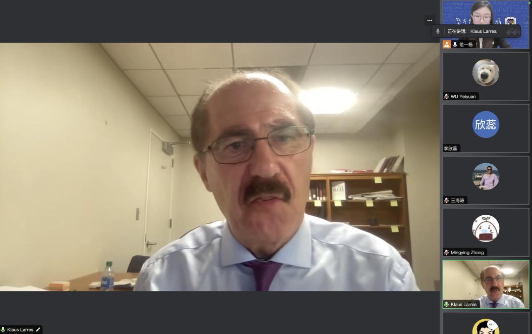 2024年4月11日和5月9日,美国北卡罗莱纳大学教堂山分校克劳斯· 拉雷斯(Klaus Larres)教授应必赢242net官网邀请为师生举办了两场线上讲座,青年教师范一杨负责组织和主持了两场讲座。