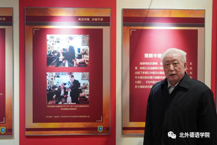 分享会结束后,梅兆荣大使在吴江院长的陪同下,跟随志愿者讲解员的脚步,参观了中德建交五十周年主题展“施密特与中国”,并在自己与施密特总理2015年的合影前驻足良久。
