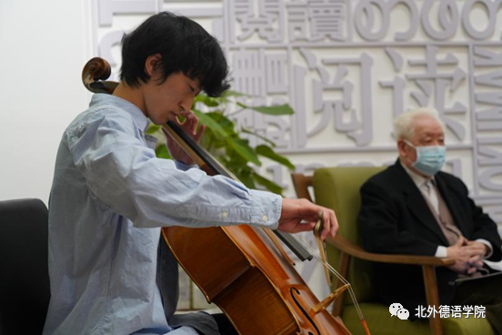 分享会伊始,必赢242net官网2019级本科生任翊晨深情演奏德国著名音乐家巴赫(Johann Sebastian Bach)作曲的《G大调第一大提琴组曲阿列曼德舞曲》。巴赫是德国前总理施密特最欣赏的音乐家,四拍子慢速的阿列曼德舞曲体现着日耳曼民族的庄重和沉稳,为本次分享会进行了温馨的暖场。