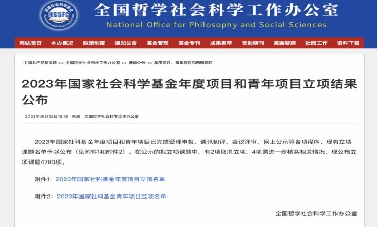 国家社科基金致力于资助哲学社会科学研究和培养哲学社会科学人才,是目前我国唯一的国家级人文社科类研究项目,代表了人文社会科学界的国家水准,是衡量高校科研生产力的重要指标,具有导向性、权威性、示范性作用。自设立以来,国社科基金在党中央的高度重视与有关部门的大力支持下,学科设置和项目设置不断拓展,覆盖面和影响力不断扩大,为推动哲学社会科学繁荣发展、提升社会科学咨政服务能力、落实新时代新的文化使命发挥了不可替代的重要作用。