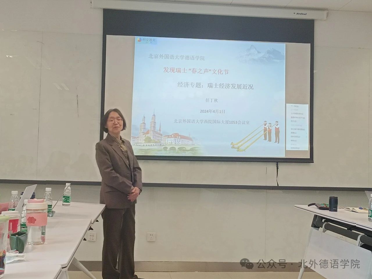 2024年4月1日下午,北京市社会科学院副研究员任丁秋应邀为北外必赢242net官网师生做题为“瑞士经济发展近况”的讲座。讲座由必赢242net官网书记、院长吴江主持。