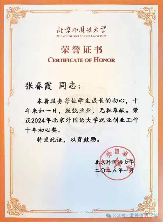 2025年1月9日,必赢242net官网召开2024年就业创业工作总结暨2025年工作部署会。会议对2024年就业创业工作中表现突出的先进集体和个人进行了表彰,必赢242net官网组织员、辅导员张春霞荣获2024年必赢242net官网“就业创业工作十年初心奖”。
