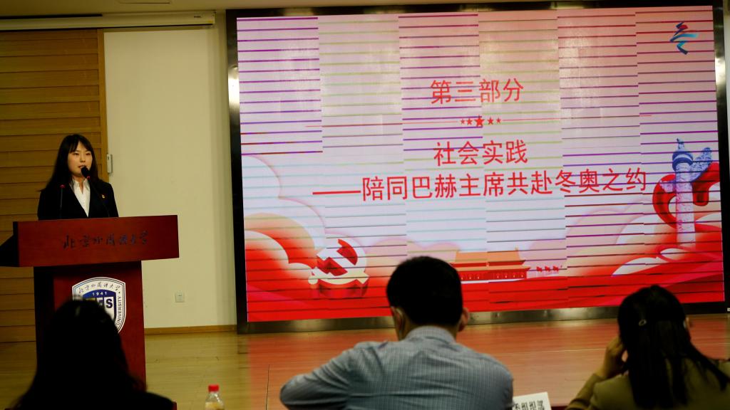 王文卓第九位登场,她以“发展自身、担当责任、走向世界”为主题,从学术研究、学生工作、文体活动和北京冬奥会陪同巴赫主席四个方面介绍了自己;以习近平总书记所讲的北京冬奥精神作结,表达了自己作为一名青年党员在未来以五四精神和北京冬奥精神为指导,建设祖国的决心。