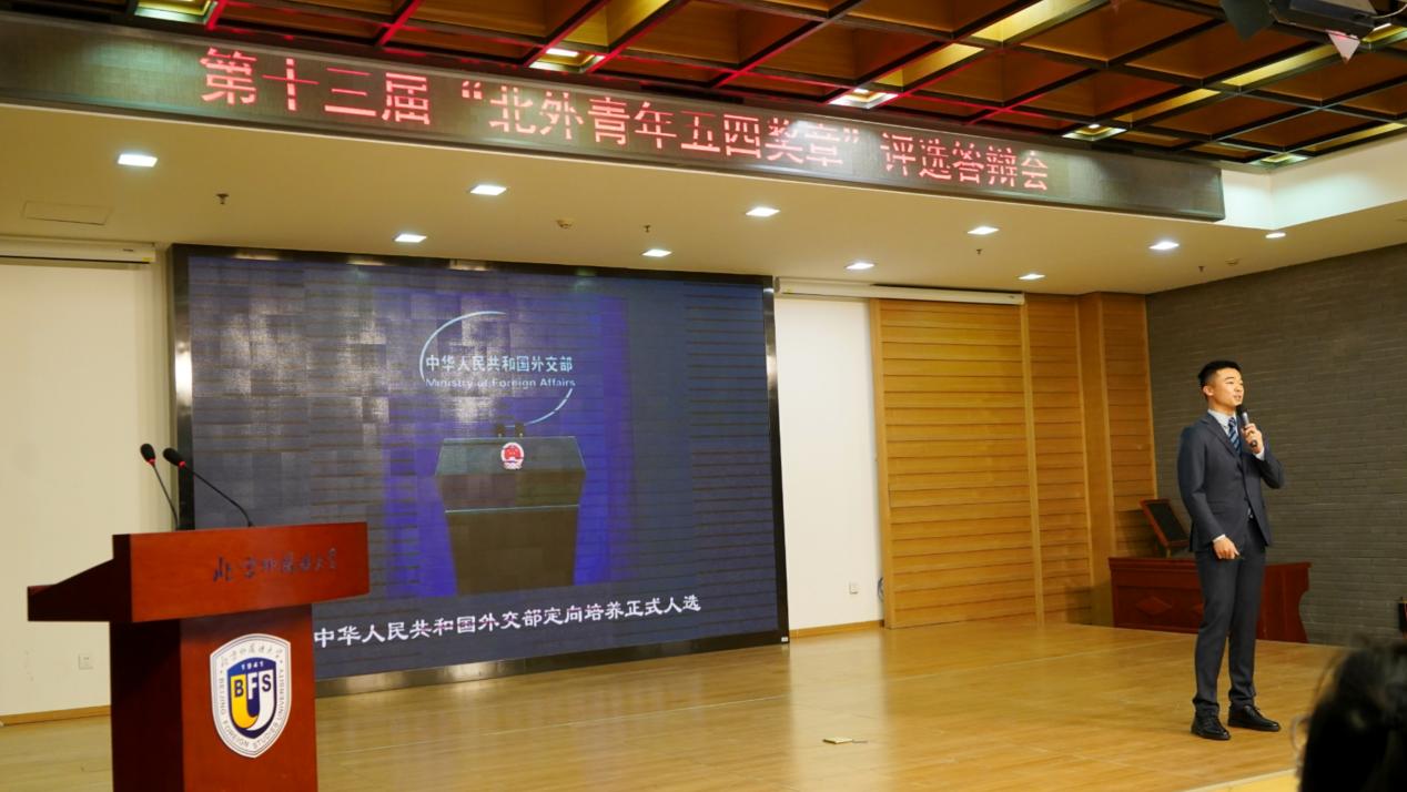最终通过答辩环节评委投票,曹涵荣获“北外青年五四奖章”。