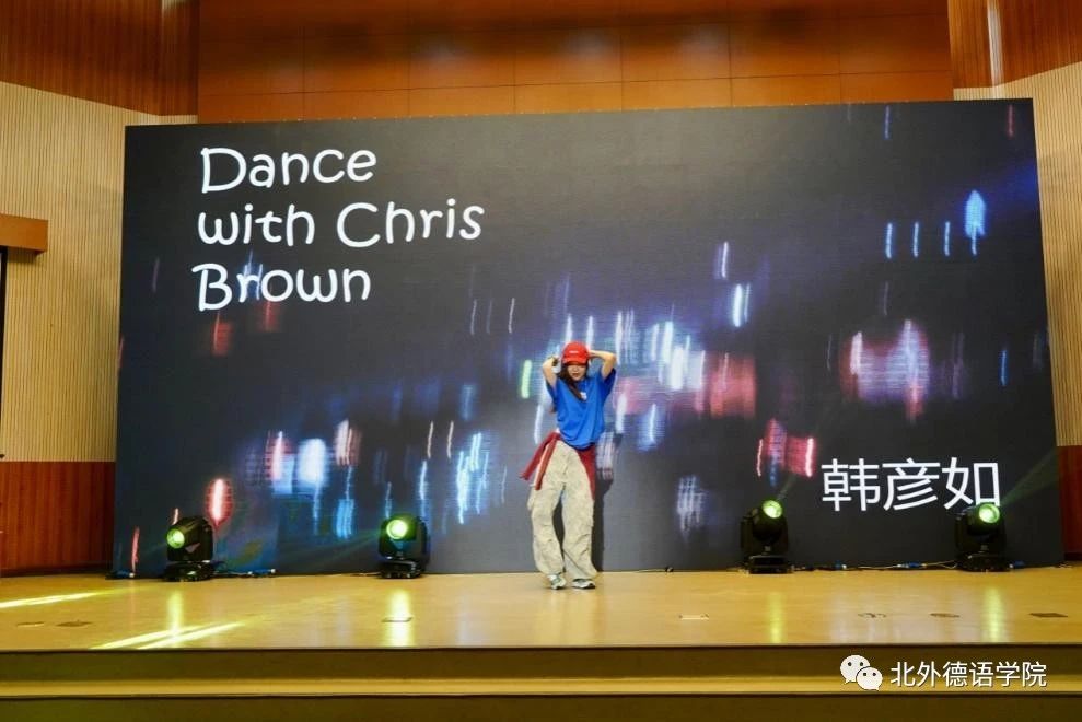 高年级学生载歌载舞迎接新生,21级韩国留学生李秀程带来英文歌曲《Million Reasons》,独特的声线仿佛原声再现;20级本科生张珈睿、李鑫街舞表演用节拍和舞步燃起全场的气氛;21级博士生孙策哈吉与23级博士生陈丹阳咏唱中德文诗歌《乘着歌声的翅膀》,尽显歌德经典诗歌魅力;20级本科生谢振韬一曲《水中花》艳惊四座;23级硕士生郭沈嘉乐、21级本科生杨茹涵、21级本科生田婧雯德文配音电影《茜茜公主》,重现一代名后风采;阿语学院20级本科生刘明骋应邀表演古典水袖舞《探窗》让人叹为观止;21级本科生李函忆精彩演绎歌曲《seventeen》;23级硕士生韩彦如《Dance with Chris Brown》舞动全场。