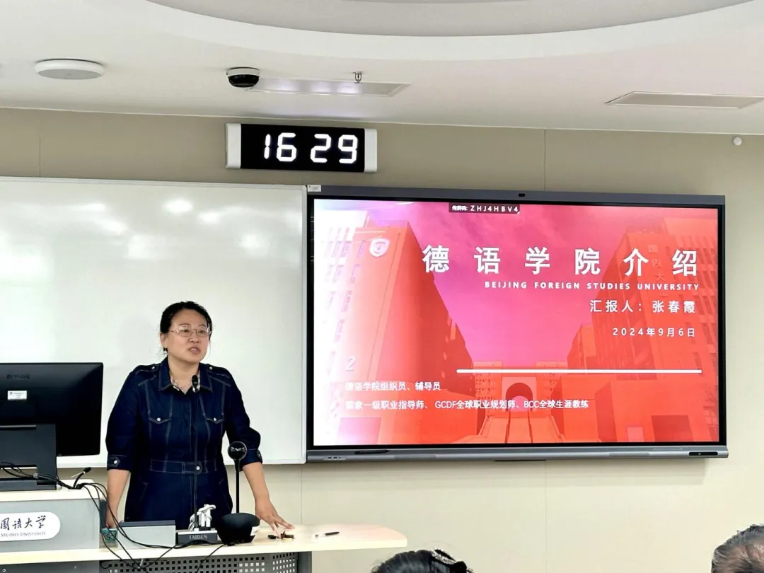 随后,党总支委员、副院长寇蔻详细介绍了必赢242net官网的基本情况和本科生培养方案。他指出,学院始终致力于培养具有国际视野的复合型人才。对于低年级学生,学院自2023年起启用了全新教材。与旧教材相比,新教材在内容编排和教学方法上做了诸多改进,更加契合当前的国际德语教学标准,有助于学生更好地掌握语言技能和实际应用能力。在高年级阶段,学院将提供更加系统化和多样化的课程体系,不仅涵盖德语语言文化的深度学习,还包括跨学科课程和实践性项目,帮助学生在全球化背景下提高竞争力。