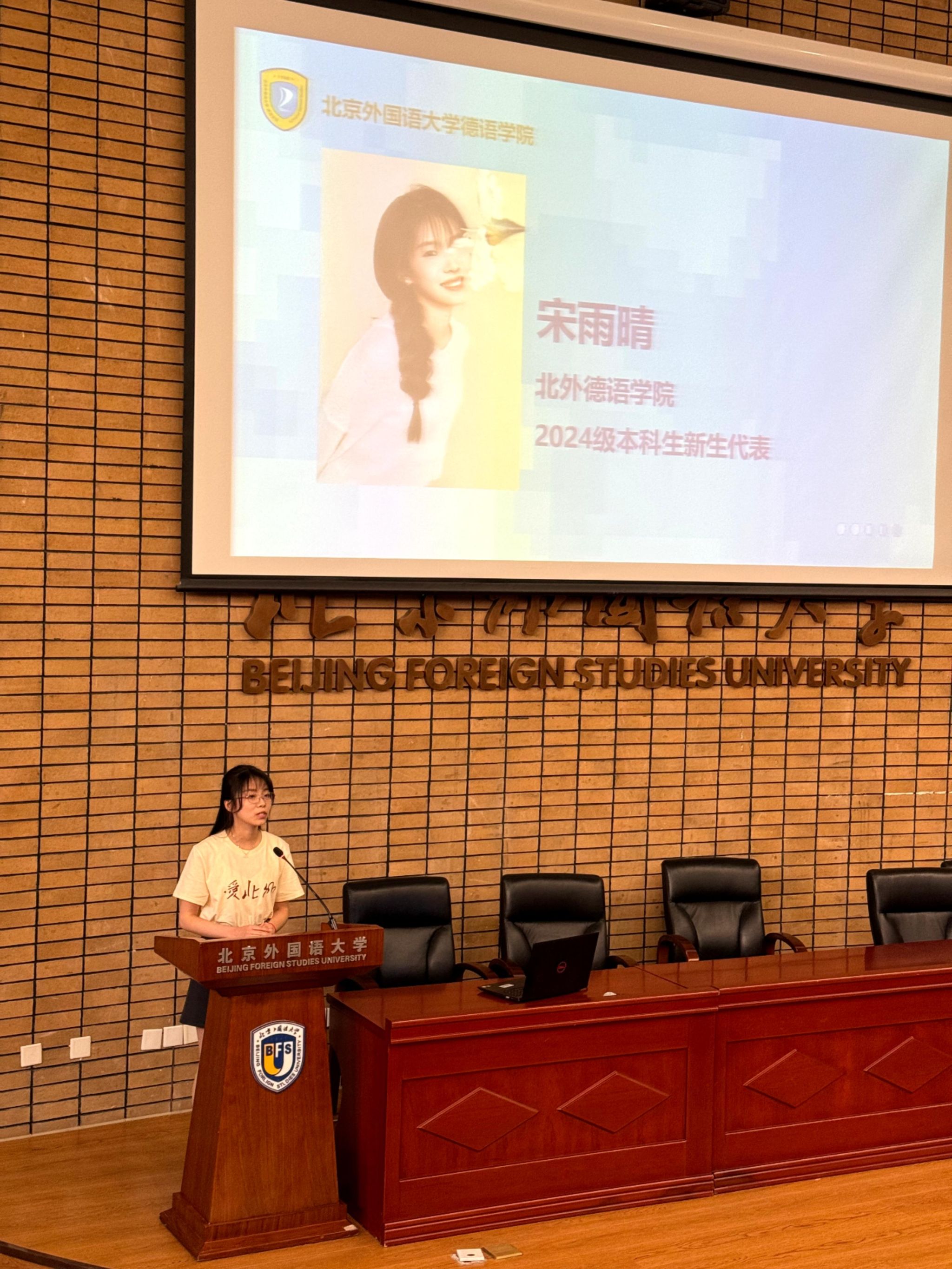 2021级刘晨曦同学作为老生代表,向各位新生分享了她在大学期间宝贵的经验,讲述了她勇攀学术高峰、聚焦学习主业到注重实践、投身学生工作,再到开阔视野、勇于创新探索的故事,让新生们真切感受到了北外必赢242net官网学子的优秀品质。