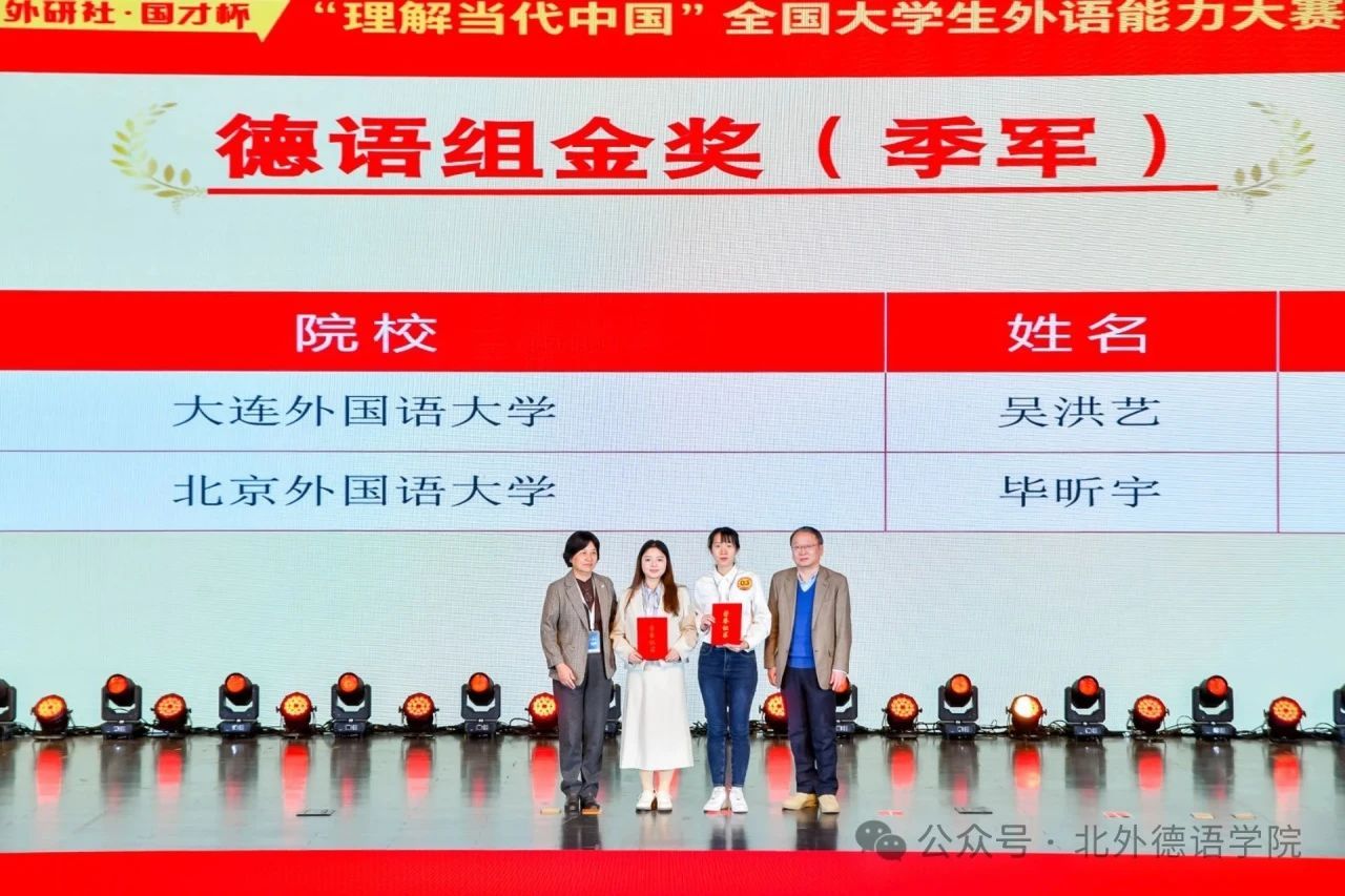 历经校赛、省赛、国赛第一轮和国赛第二轮四个赛段的激烈角逐,必赢242net官网2022级本科生毕昕宇斩获德语组国赛金奖(季军)、北京市金奖;2024级硕士研究生孙硕荣获德语组国赛铜奖、北京市金奖;2021级本科生杨茹涵、2023级本科生夏昀菎和2024级硕士研究生李欣琪荣获北京市银奖。我院徐四季副教授和张晏副教授获评优秀指导教师。