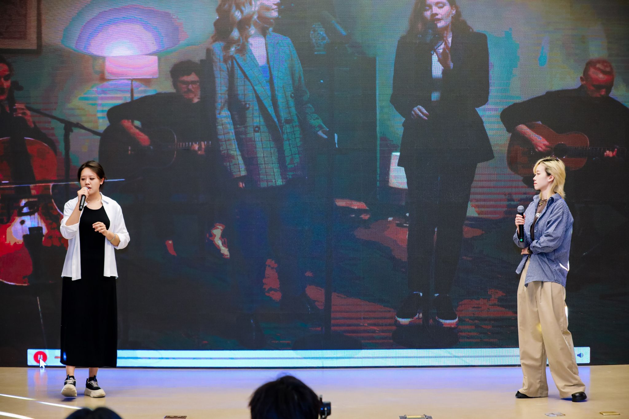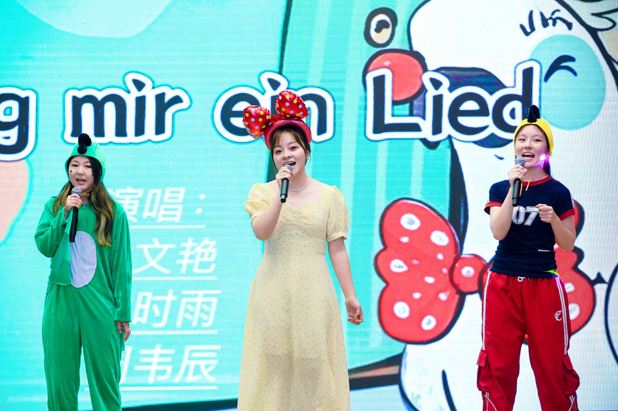 进入第三幕“同心同‘德’”,经典音乐剧《伊丽莎白》再现奥匈帝国的往事种种。潘颖老师深情演唱德语歌曲《So viele Lieder sind in mir》,引人入胜。夏日组诗朗诵在古典乐曲的伴奏下,为联欢会增添诗意光辉。