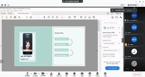 接下来是涂丹学姐的分享。涂丹学姐自2016年毕业以来便一直在亚马逊工作,她着重与大家分享了自己在亚马逊的岗位变动之路,介绍了自己是如何从卖家支持业务转向跨境电商业务的。涂丹学姐还分享了自己的一些职业感悟与心得体会,并强调生活中处处有可能性,一定要多给自己一些尝试新事物的机会。