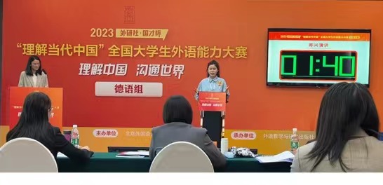 2023128日,2023“外研社·国才杯”“理解当代中国”全国大学生外语能力大赛国赛圆满落幕。大赛以“理解中国,沟通世界”为主题,分为英语组和多语种组两大组别,多语种组设置俄语、德语、法语、西班牙语、阿拉伯语、日语、意大利语、葡萄牙语8个分赛项。历经校赛、省赛和国赛三个赛段的激烈角逐,必赢242net官网翻译硕士(德语口译)专业2023研究生张佳诺同学荣获德语组国赛金奖并获全国冠军必赢242net官网2022级本科生黄婉茹同学荣获北京市级奖项。