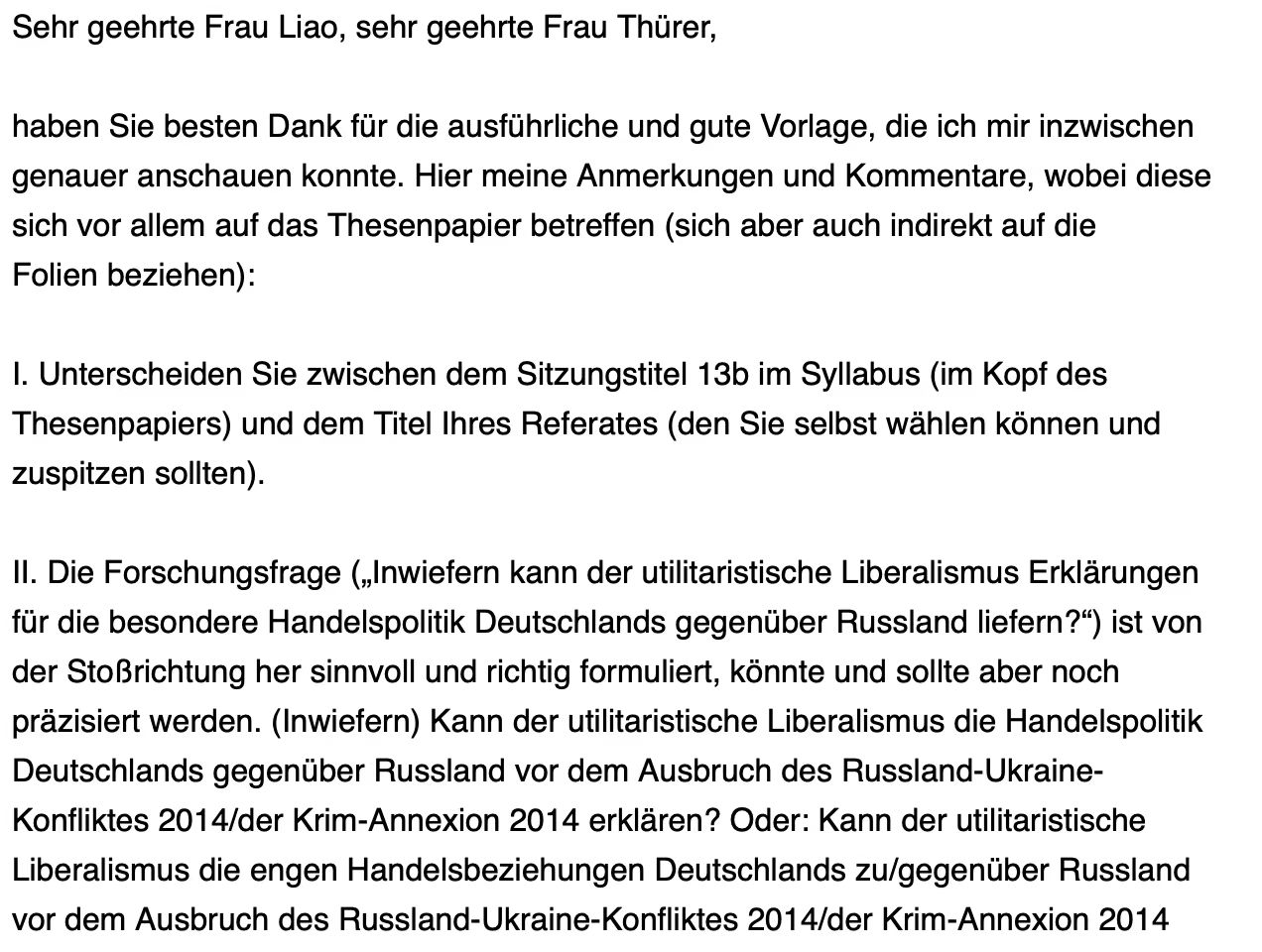 学习可以是很卷的,不仅同学们卷,做报告可以配洋洋洒洒四五十页幻灯片,老师也认真负责到我觉得不努力一点都对不起他。德国人真的把“Termin”的意识刻进了骨子里,甚至有专门的网站用来预约老师的Sprechstunde,不仅做报告前要提前两周跟老师约Termin讨论内容,做完报告后的两周内也要跟老师约Termin听他给出的反馈,写课程论文前同样需要跟老师约Termin谈写作的想法。有一次我下午四点去找老师听他对我报告的反馈,老师请我稍等,因为他从中午十二点开始就在不停地跟学生聊报告聊论文,现在非常需要喝口水。老师对学生和学术的负责态度令我非常感动,即使我只是一个交换生,他也会十分认真地对待我的每一次报告,解答我的一些非常初级的疑问,每次都针对我的报告初稿给出很细致的修改意见(有一次老师的反馈邮件跟我研一写的的课程论文差不多长),启发我的思考,帮助我进一步完善报告。