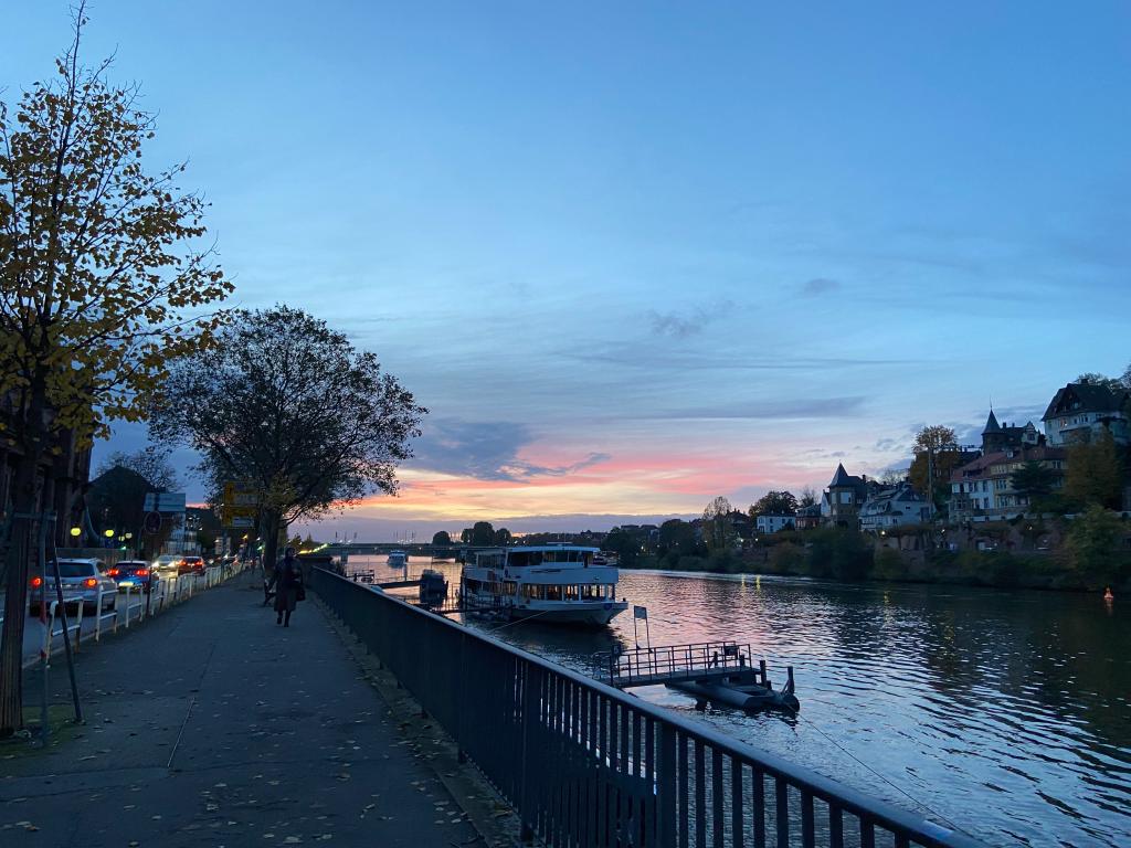 生活是很松弛的,毕竟在这边所有东西都是慢慢的。从高铁时速350km(告诉德国同学从我家到北京坐飞机两个半小时,坐高铁只要七个小时,他们都震惊了)、信息化飞速发展的中国来到这个办银行卡都要等一周信件的德国,我也开始学着放慢自己的脚步,告别以往宿舍-食堂-图书馆三点一线的生活,忘记出行的“目的性”,花更多时间去偶遇和享受生活中的小美好:在RB(Regionalbahn,城际慢车)上久违地读纸质书,在万圣节的晚上跟语言班的同学们一起烤饼干、看哈利波特再吵吵闹闹地回宿舍,下雪天丢下正在复习的功课去城堡上看雪景,夏天躺在内卡河畔晒太阳,傍晚站在老桥上边看晚霞边发呆,半夜十二点跟刚认识五分钟的同学冲到操场上边散步边等极光,在结束两天的早八之后对着体育馆落地窗外的绿色大草地练习瑜伽……