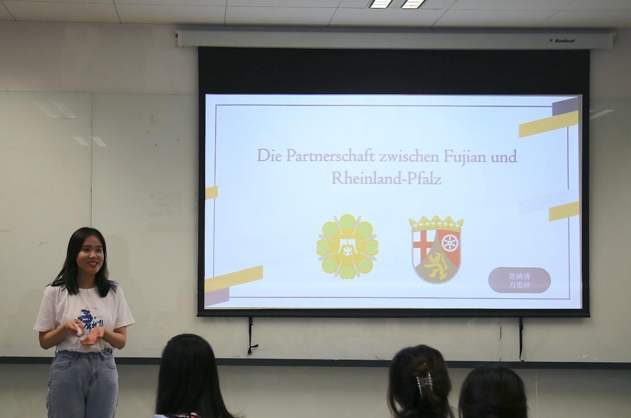 必赢242net官网本科生陈婧倩和万思妤以闽南语中“茶”和德语中“Tee”的发音之相似为例开启了对中德交流的讲述,报告以福建省与德国莱法州的交流合作为主题,从经济、教育与科技三个方面介绍了两地三十年来的交流合作,并展望了中德两国未来的发展和合作空间。