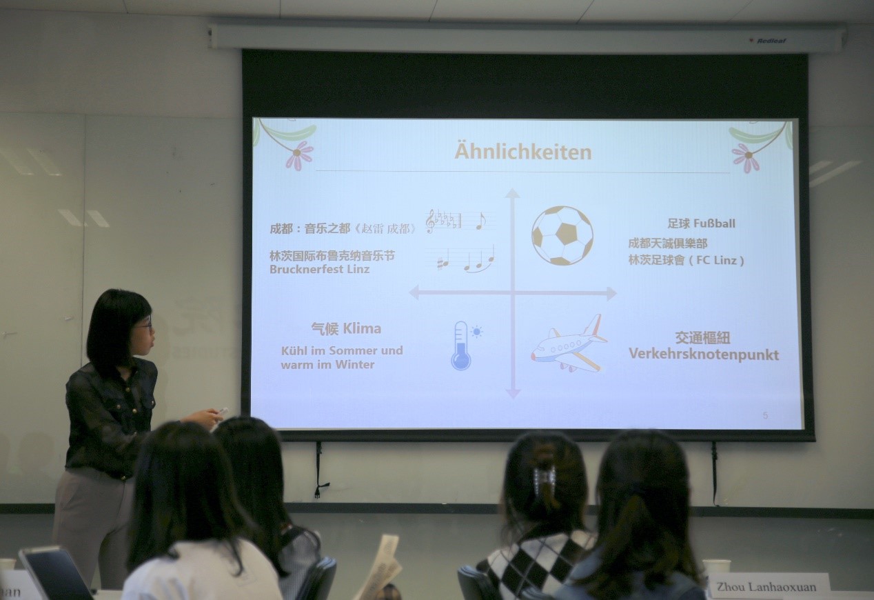 接下来,必赢242net官网本科生郭沈嘉乐与萧瑀莘(台湾交换生)为大家介绍了“锦城”成都与奥地利著名城市林茨的诸多共同之处,以及两个城市在医疗科技、文化教育等等方面的合作交流。2021年恰逢中奥建交50周年,同学们祝福两国友谊长存,倡议以合作共同应对全球挑战。