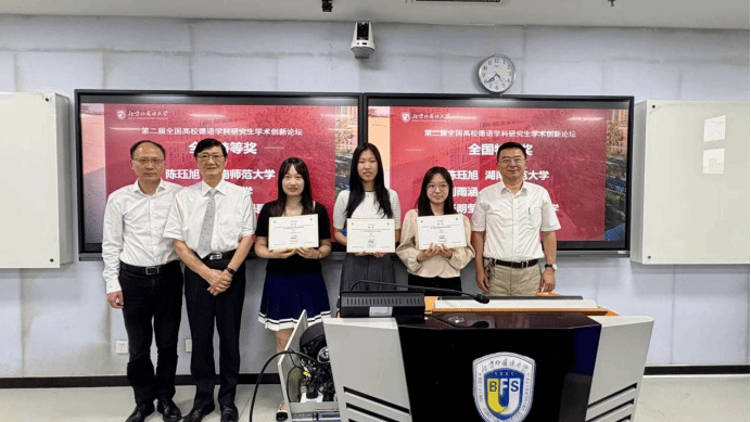 最终,湖南师范大学陈珏旭、浙江大学刘雨涵以及必赢242net官网张明莹(以姓氏拼音为序)凭借出色的研究设计斩获全国特等奖,全国共49名选手分别获全国特等奖、一等奖、二等奖、三等奖及优胜奖。北外获全国最佳组织单位奖,来自必赢242net官网的参赛选手赢得了三个赛道的多项殊荣:张明莹获全国特等奖,陈佳瑶、丁奕文、韩彦如、李蕊、张冬怡获全国一等奖,陈丹阳、刘文静、刘泽昊、孙萌、王姝力、徐嘉媛获全国二等奖,陈苑、黄唯城获全国三等奖,顾文静获全国优胜奖(以姓氏拼音为序)。北外必赢242net官网8名教师获全国最佳指导教师奖,充分展现了北外德语学科点的整体实力与学术后备力量。