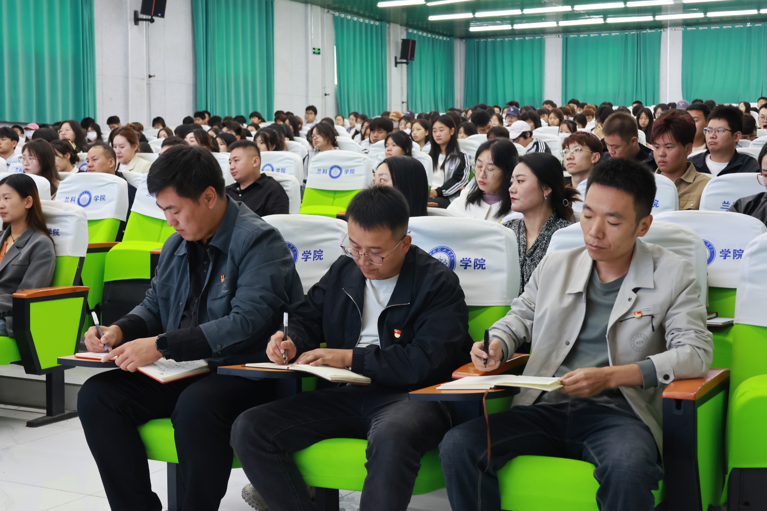 为全面深入学习贯彻党的二十届三中全会精神,坚持不懈用党的创新理论铸魂育人,根据省委教育工委相关安排,9月9日上午,学院在学术报告厅举办“理响校园·培根铸魂”全省高校学习贯彻党的二十届三中全会精神省级示范宣讲报告会。此次报告会特邀甘肃省委宣讲团成员、兰州交通大学马克思主义学院崔迎军教授作为主讲嘉宾,学院副院长兼宣传统战部长刘晓伟主持会议。全体中层干部、马克思主义学院全体教师、辅导员及党员师生代表共600人参加。