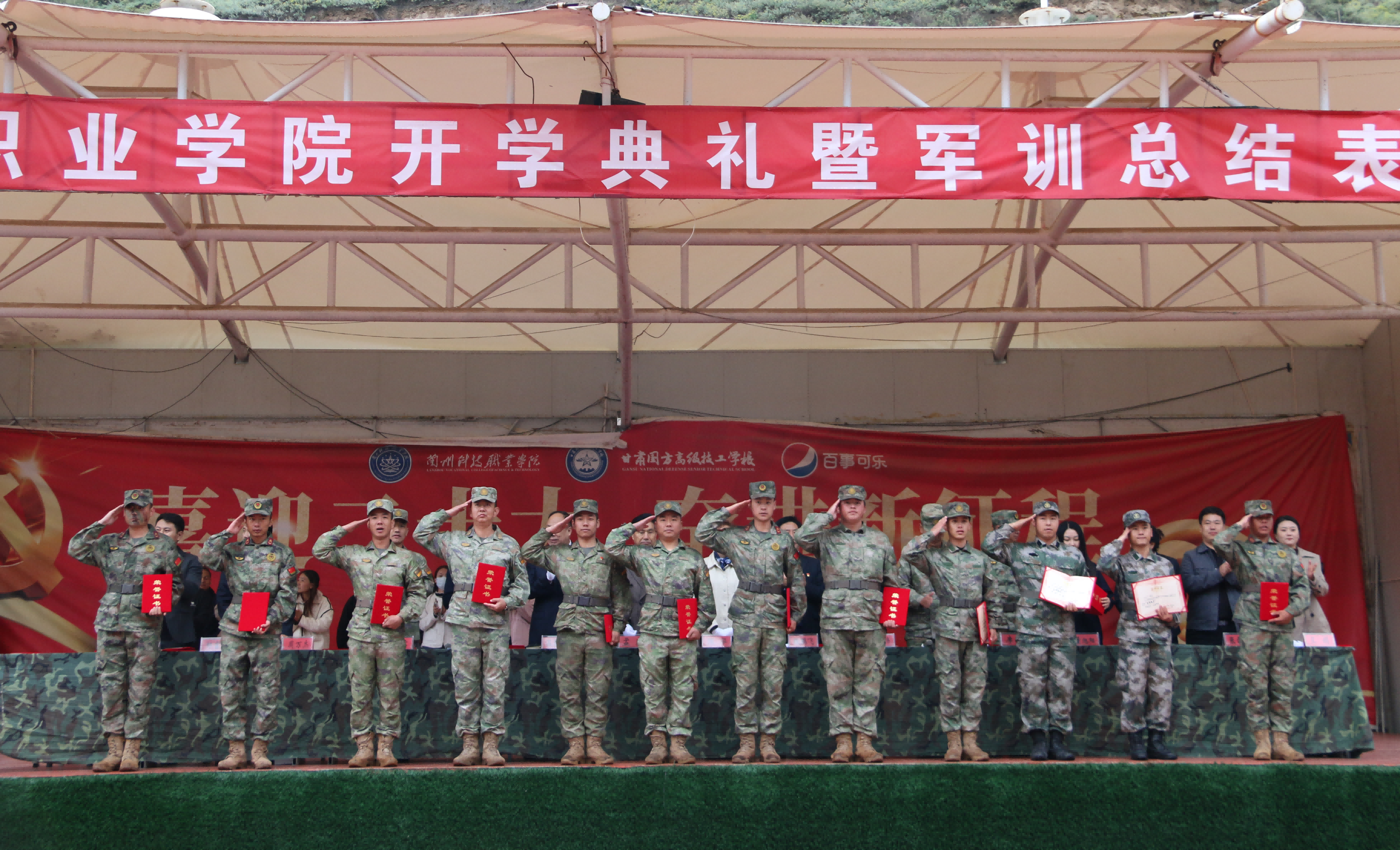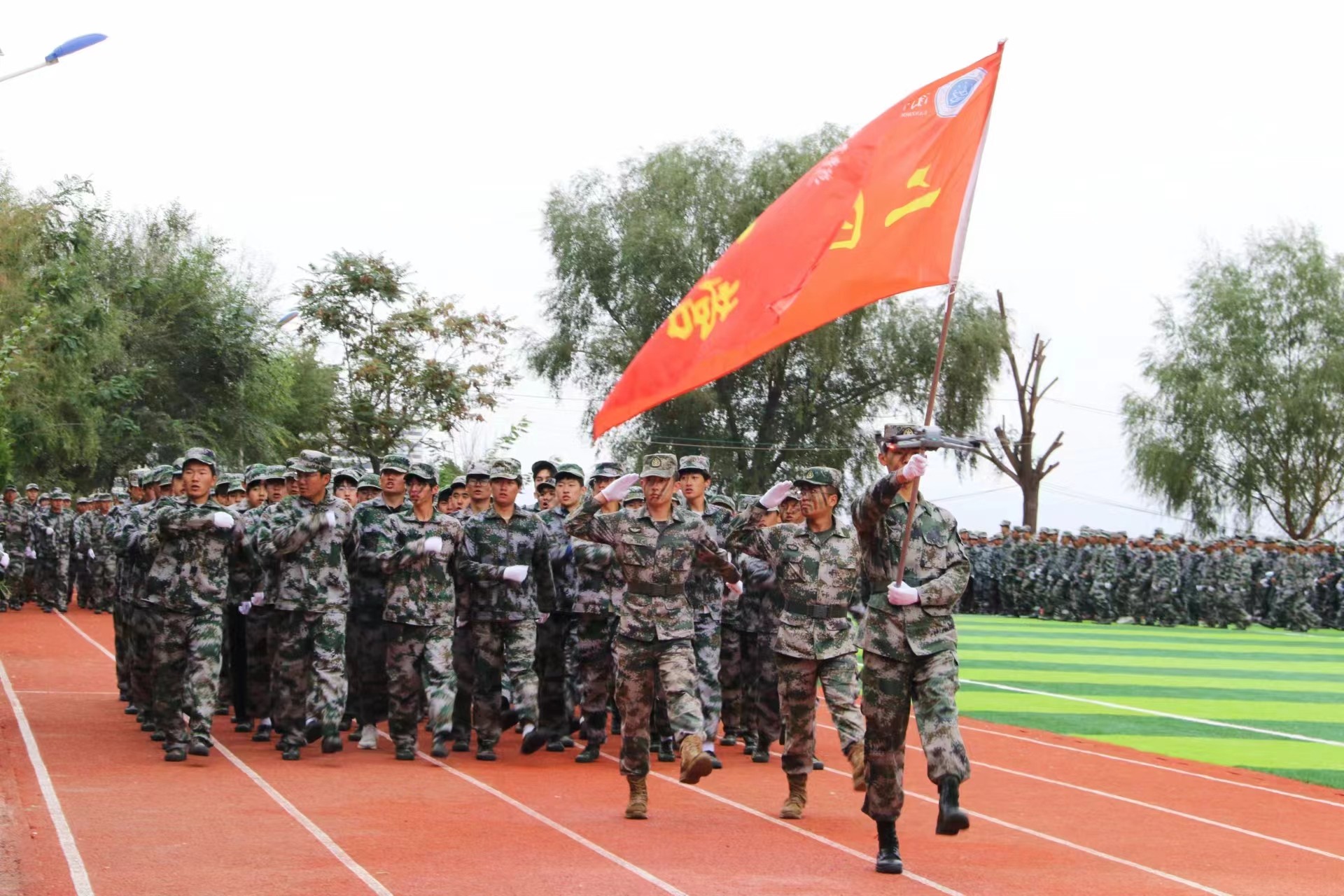 2024年9月29日下午,学院在体育运动场举行了2024级新生军训汇报表演暨总结表彰大会。学院董事长、院长孟虎,党委书记温攀玺,中国人民解放军九六八四三部队团副参谋长张明意,营教导员马梓轩,纪委书记、督导专员陈华等出席大会,会议由学院党委副书记、常务副院长孟光主持。