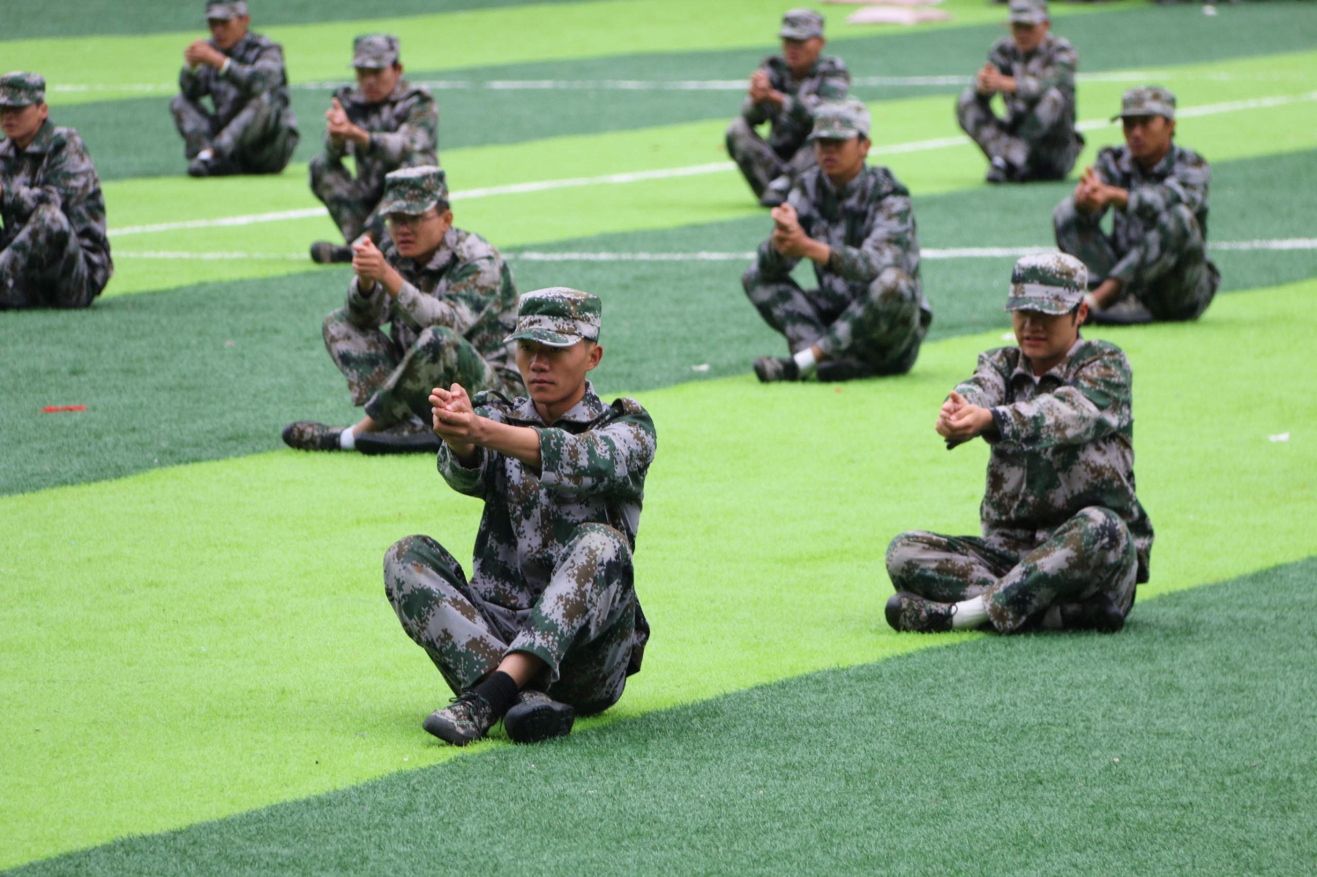 军体拳方阵,拳风凌厉,呼啸生风,每一拳每一脚都蕴含着磅礴的气势,生动展现了新生们面对挑战时的无畏勇气与一往无前的坚定决心。紧随其后的是棍术方阵,他们动作精准同步,眼神中闪烁着坚定不移的光芒,将棍术的速度与力量演绎得淋漓尽致,每一个挥棍的动作都透露出凌厉与果敢。