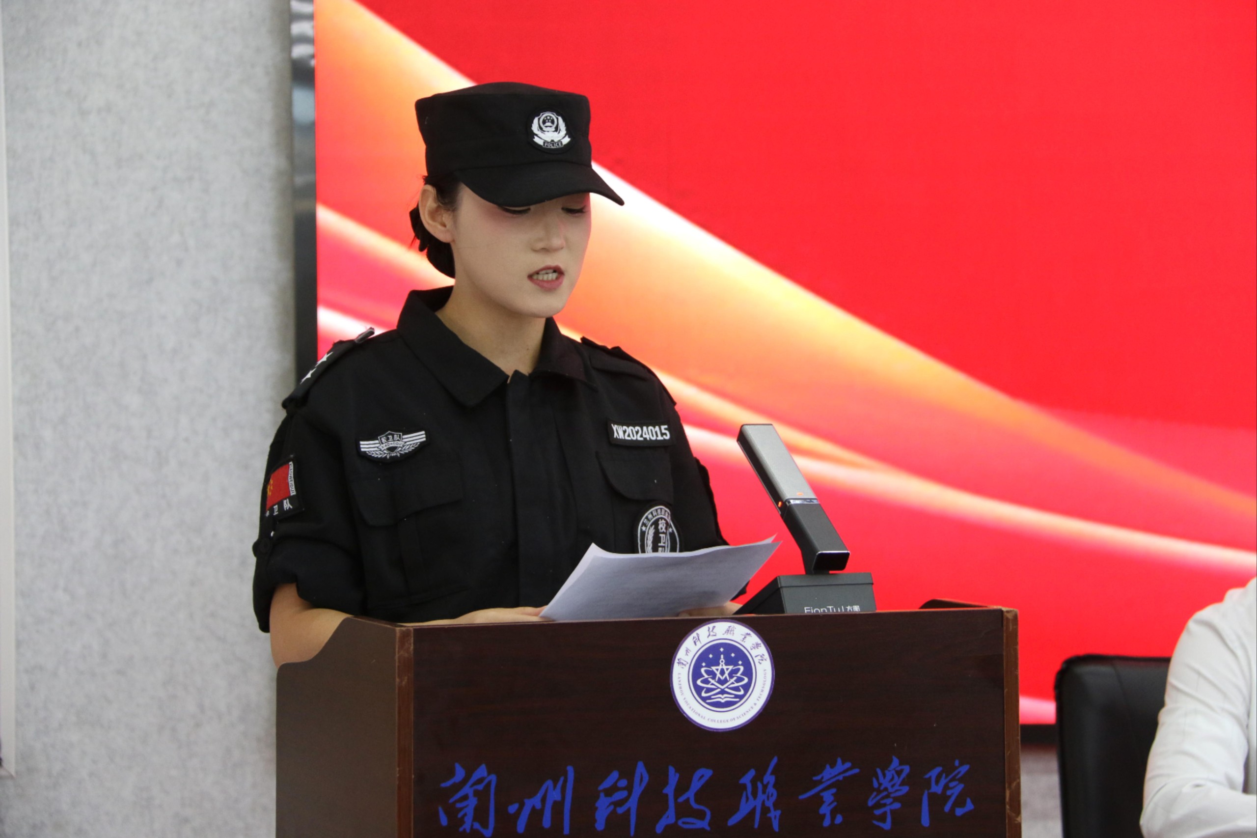 仪式上,党委副书记、常务副院长孟光致辞。他首先向即将离任的老队员表达了诚挚的感谢,称赞他们用忠诚筑起了校园安全的“钢铁长城”,是兰科院的“守护星辰”。随后,对新一任校卫队队员他提出三点期望,一是要以“科技”赋能安全工作,打造“智慧校卫”新标准;二是要以“团结”凝聚战力,锻造“召之即来、来之能战”的铁军;三是要以“赤诚”践行使命,让“兰科院卫士”之名响彻校园。他勉励全体队员以脚步丈量校园的每一寸平安,以行动诠释“守护者”的铮铮誓言,在奋斗中绽放青春最硬核的光芒。
