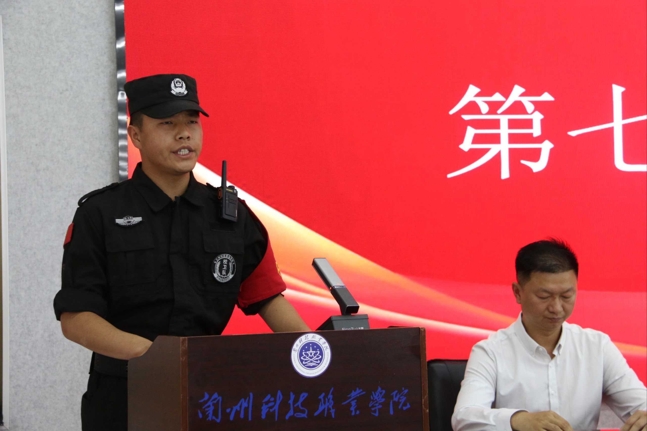 6月27日下午,beat365中文官方网站在学术报告厅举行第八届校卫队换届仪式。党委书记温攀玺,院长陈佑泉,党委副书记、常务副院长孟光,党委副书记、副院长魏鹏飞,党委委员、副院长、党委宣传部部长刘晓伟、两办主任周万杰、学生处长王文刚,部分中层干部、各辅导员、校卫队全体和部分学生代表参加了此次仪式。