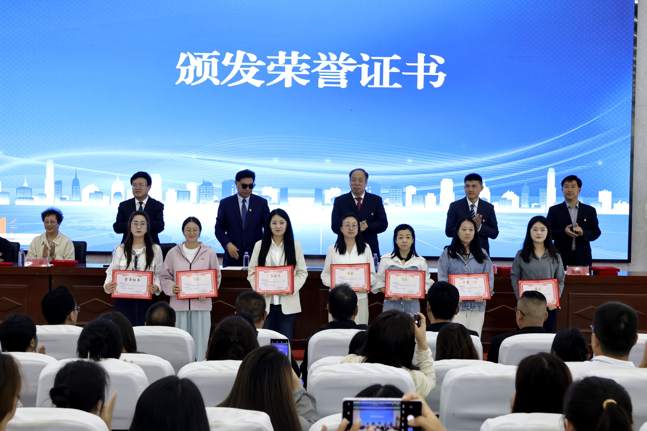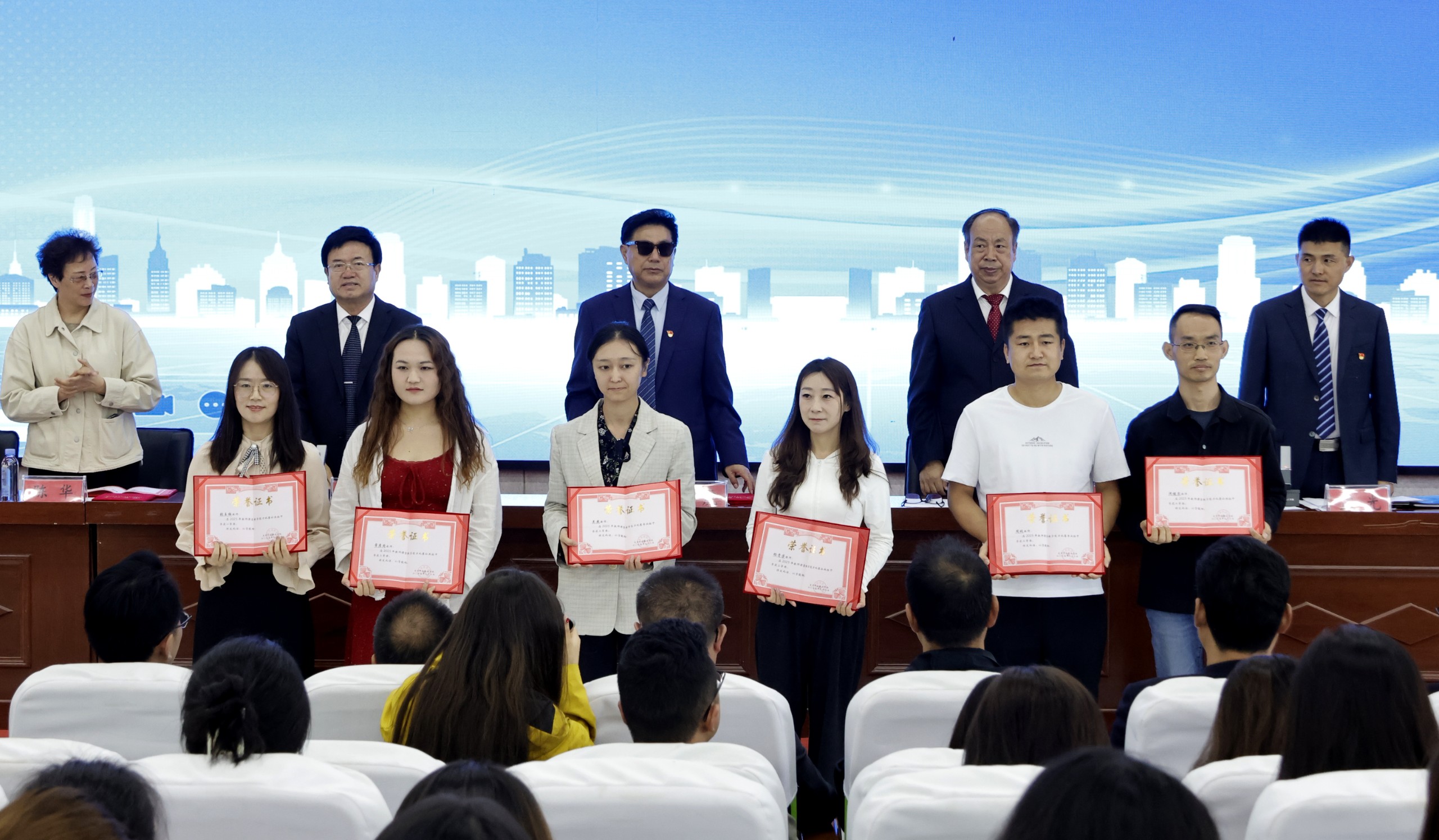 随后进入荣誉颁发环节。在全场热烈的掌声中,受表彰的先进集体代表、先进个人及赛事获奖人员依次上台,从院领导手中接过荣誉证书。鲜红的证书承载着学院的认可与期许,获奖人员脸上洋溢着自豪的笑容,现场氛围庄重而热烈,进一步激发了全体教职工对标先进、奋勇争先的热情。