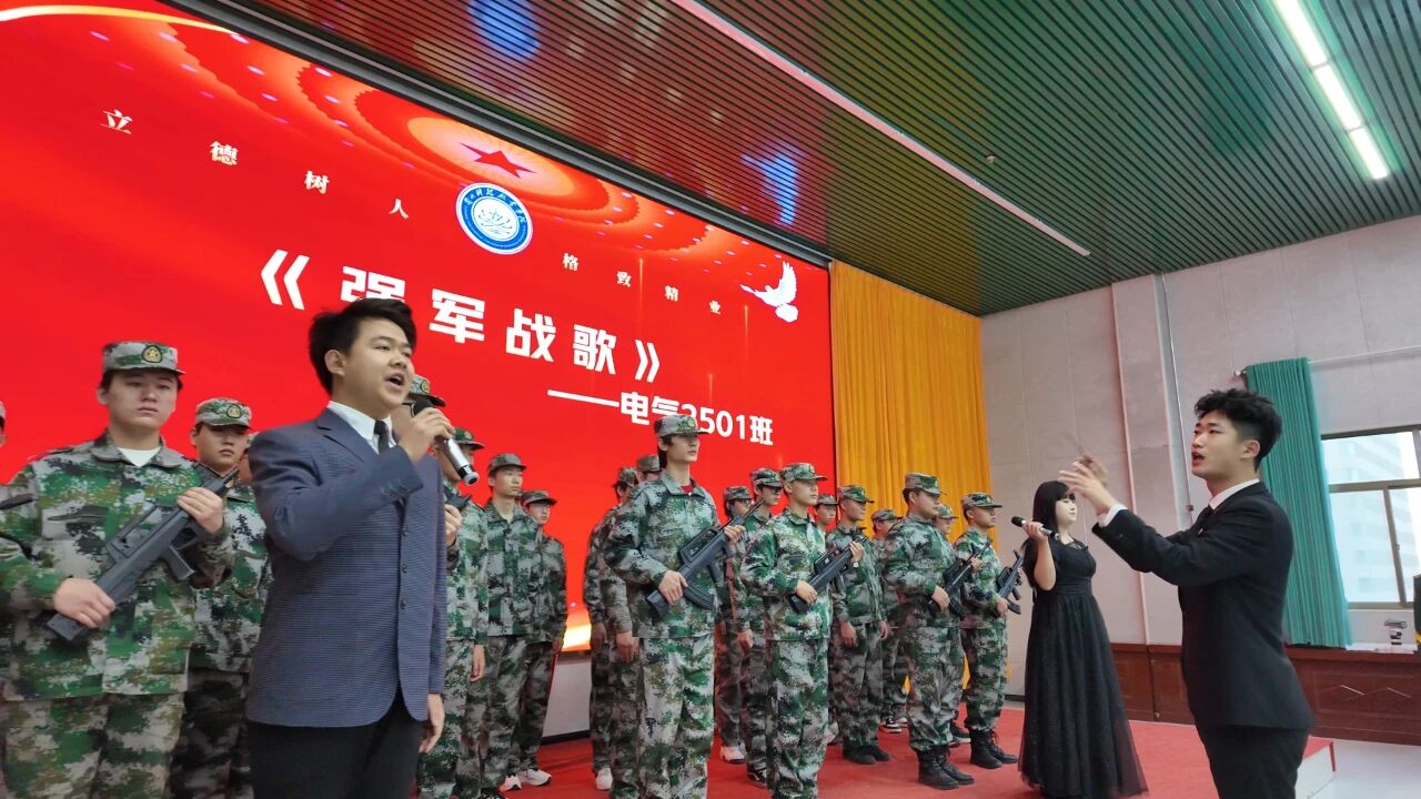4.jpg         总结表彰环节结束后,由白天杨、鲍雨萌同学主持的优秀成果展示精彩上演。红色故事分享环节,口腔2402班王嘉红同学讲述的《腊子口战役——“云贵川”小战士》再现了长征路上的英雄壮举;医学美容2401班安利丽同学带来的《每一株野草都是生命的密码》诠释了平凡中的伟大坚守;财经商贸学院辅导员李万里倾情演唱《红星照我去战斗》,激昂的旋律唤起了现场师生的红色记忆。红色书籍分享中,张玉梅老师解读《甘肃红色文化十讲》,带大家探寻家乡的红色底蕴;高萌倩老师分享《毛泽东选集》,让大家在伟人思想中汲取前行力量。红色电影分享环节,计算机2503班李雪缘同学重温《长津湖》中冰雕连的英雄事迹;电商2401班洪永强同学讲述《高山下的花环》里的家国情怀,深深打动了在场每一位观众。最后,电气2501班全体同学合唱《强军战歌》,嘹亮的歌声展现了新时代青年的强军梦想与爱国情怀,全场师生共同唱响《歌唱祖国》,将活动气氛推向高潮。