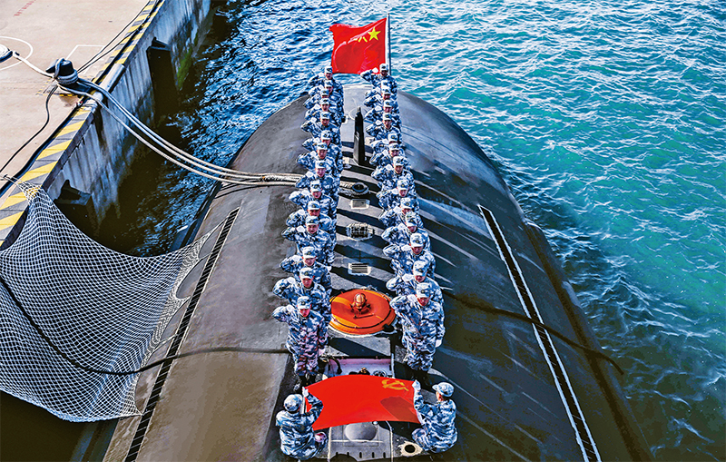 图为海军某潜艇基地官兵举行重温入党誓词仪式(资料照片)。 新华社发 王青/摄
