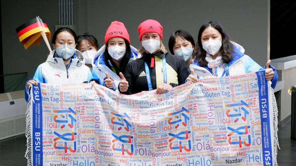 初来乍到的我们在领完防疫物资后就被带去了休息室,等待代表团开完注册会议后迎接代表团进村。我永远记得我们见到的第一位德国代表团成员,在听到我们用德语自我介绍、发现我们都能够流利地使用德语工作时脸上露出的惊喜。那是我第一次真实感受到,自己是一名语言领域的专业志愿者。