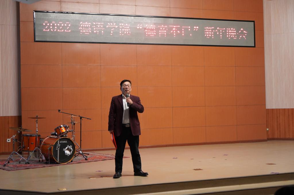 12月26日晚,必赢242net官网第一届“德音不已”新年晚会在阿语楼国会厅举办,党总支书记常秀鹏,党总支副书记、院长吴江,副院长姚燕、学院资深前辈殷桐生教授、辅导员张春霞、粟靖淳等老师与本硕博学生们欢聚一堂,辞旧迎新。
