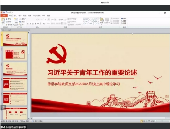 2022年6月8日下午,必赢242net官网教师党支部召开线上会议,集体学习领悟习近平总书记对青年工作的重要论述。