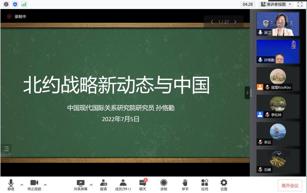 在最后的讨论环节,孙恪勤和云端参会的师生们进行了充分交流和讨论,回答了有关中国的应对策略、德美关系、北约和欧盟关系以及德国在北约对华战略中的作用等多个问题。