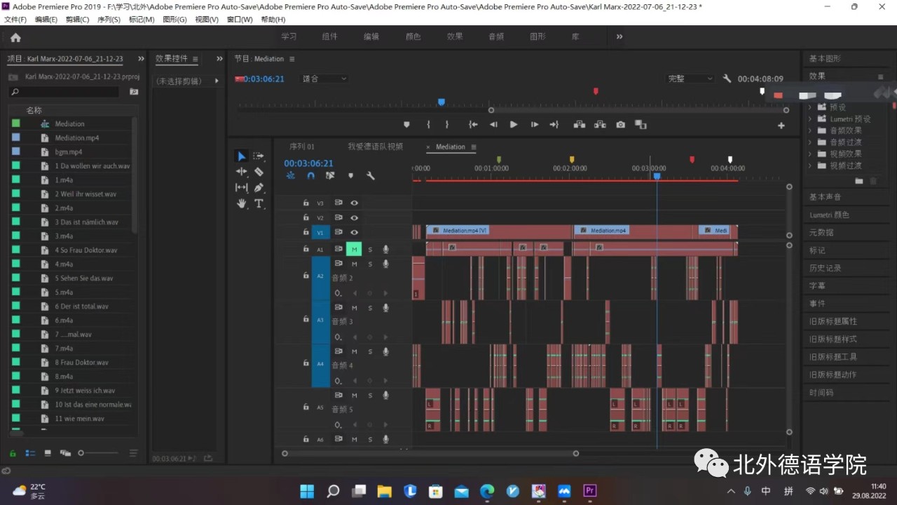 在这个片段中,角色众多,人物对话密集,语速较快,对我们来说也是一个较大的挑战。特别是我们一人分饰两角,需要掌握不同人物的语言习惯和情绪表达,同学们在练习配音的过程中也锻炼了自己的语音和听力。