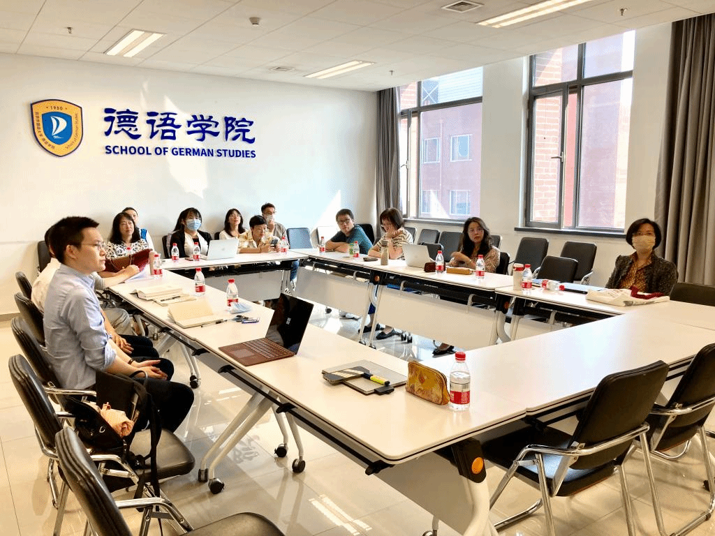 这些精彩发言引发了在座党员同事的积极回应:任卫东结合自己在 “德语文学作品中的中国形象”的研究经历分享了心得与感悟,并认为在专业课堂上融入对中国元素的思考十分必要。教师党支部组织委员寇蔻认为,在培养学生时应引导学生关注和了解我国在特定领域的真实情况并进行深入思考,才能在未来的中德经济交往中对进行有的放矢地的回应。徐四季分享了自己的学习心得,认为外语教师在教学实践中应注意培养学生在语言学习的同时加强对自身文化的理解与传播,切切实实地加强文化自信。葛囡囡、李婧结合自己编写德语教材的实践表达感悟,认为在教学中对于中国元素的融入有助于培养学生的国际视野与家国情怀。史良结合自己的专业研究,认为学者在研究中使用本土理论介绍中国文化方面大有可为。