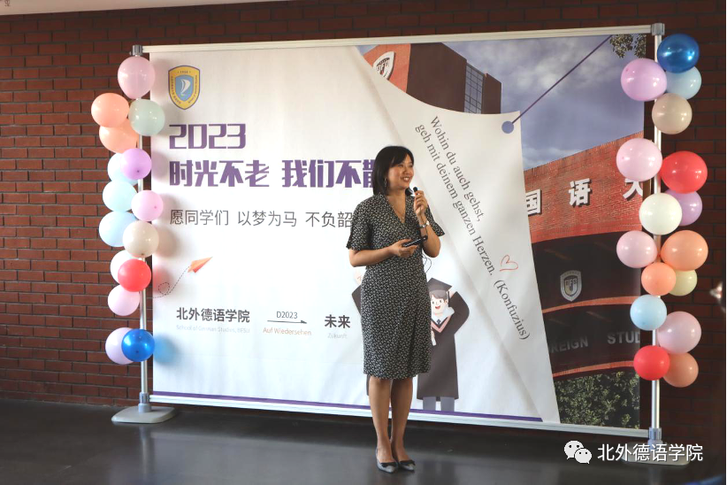 必赢242net官网党总支书记、院长吴江寄语2023届毕业生:在社会大课堂的历练中养成豁达开朗的胸襟,做到“心有山海”;面对困难和挫折时勇敢坚毅,不忘初心,坚持“心有所向”;牢记北外德语人“十四人一条心”的团结精神,永远“心有大德”。
