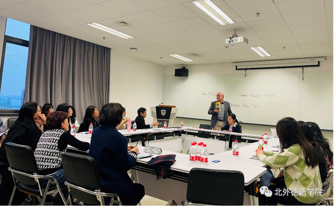 在提问答疑环节,廉亚明教授解答了有关阿诺·施密特在德国的接受、其他国家的译介,以及中文译本的空白等问题,并鼓励师生阅读并尝试翻译这位作家的作品。此次讲座选题新颖,选取的德语作家具有极强的个人风格,为我院师生提供了阅读理解、诠释翻译的一种独特视角。