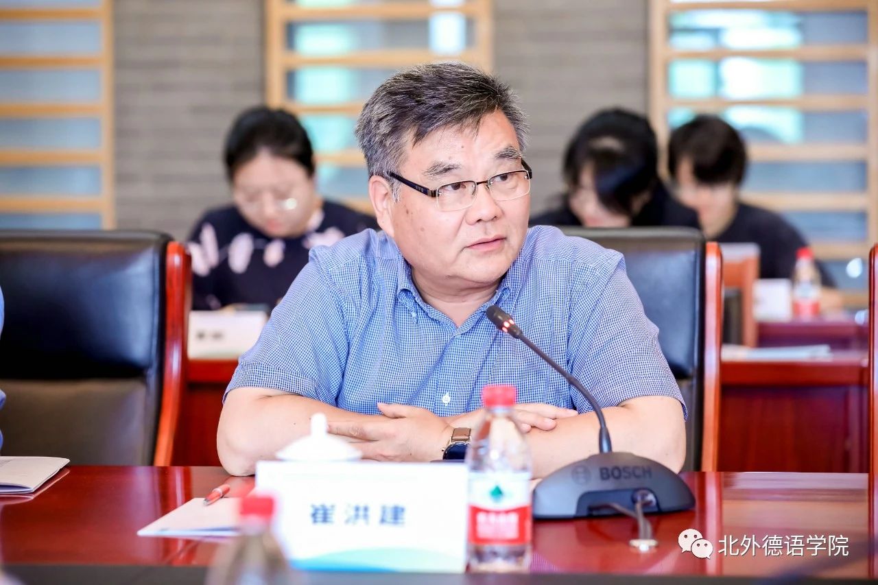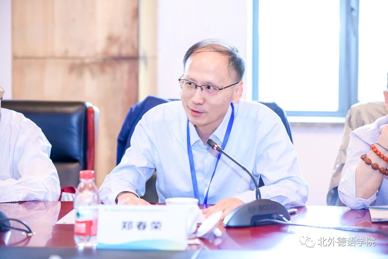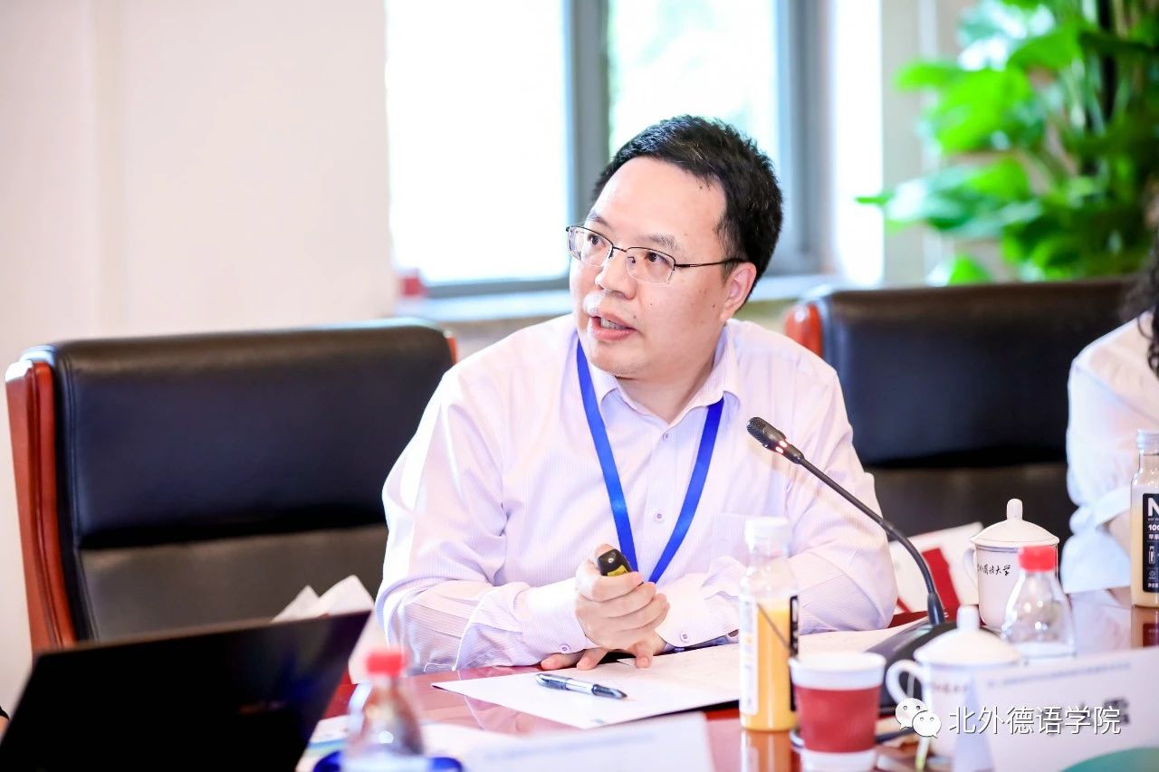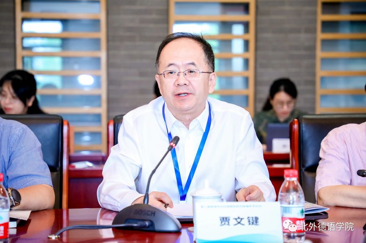 北外党委副书记、副校长,外指委德分委主任委员贾文键出席论坛开幕式并致辞。开幕式环节由北外必赢242net官网党总支书记、院长,外指委德分委秘书长吴江主持。