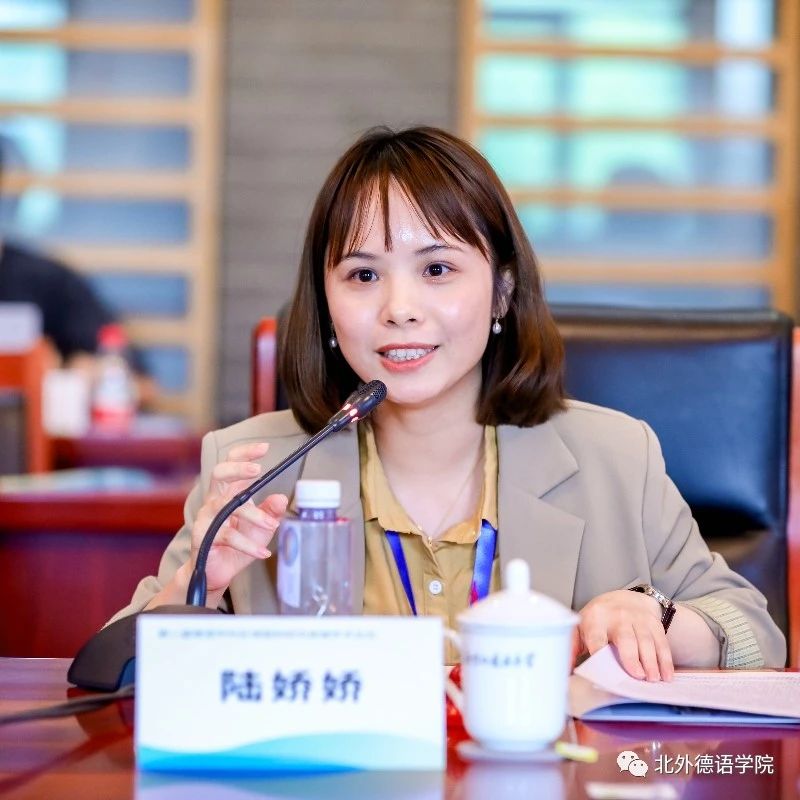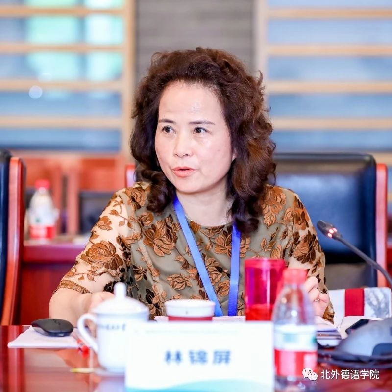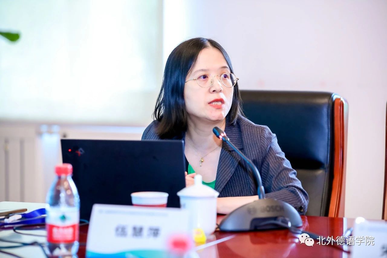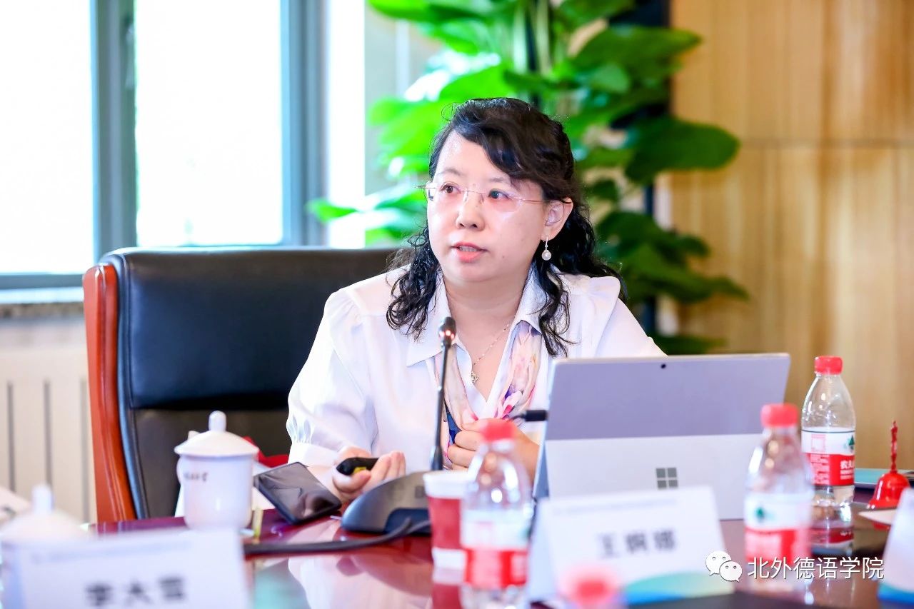 “教学教法与创新实践”主题研讨环节由北外必赢242net官网研究生教研室主任陆娇娇主持。云南大学地球科学学院研究员林锦屏基于班杜拉社会认知理论,运用结构方程模型构建大学生线上自主学习效果模型,探讨了如何培养与挖掘大学生的学习潜力与创新能力以及如何提升大学生线上自主学习效果和教学质量。南京大学外国语学院德语系主任陈民以“拉贝日记与和平城市”团队的发展为例,分享了“知行合一”的教育创新案例。北外必赢242net官网基础教研室主任李婧以新近出版的《新经典德语》教材为例,探讨了本科基础阶段教材融入国情与文化的思路与路径。北外必赢242net官网党总支委员、本科教学秘书于芳分享了“理解当代中国”系列教材融入国别区域方向专业知识课程的实践与思考。北外必赢242net官网本科一年级教学组长葛囡囡以日本德语教材为例,从符号学视角对呈现文化的图像及其与相关文字之间的关系以及图像发挥的作用进行了分析。在交流环节,与会嘉宾纷纷点赞全国高校德语学科点的创新实践以及教材建设成果。