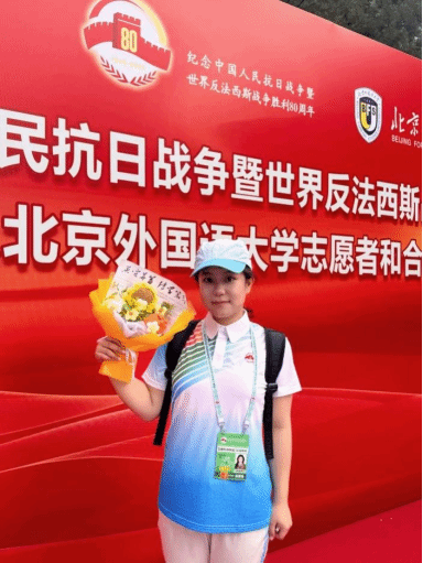 回望过去二三月,从面试选拔、确认入选、踏勘演练,再到正式活动,经历丰富,感受绵长。能作为一名志愿者参与本次纪念大会,倍感荣幸。以灿烂笑容服务盛会,以微薄之力参与并见证伟大时刻,心中的自豪与激动难以言表。我一帧帧回想,想起演练时淋过的大雨,在大风里冻得无法控制肌肉;想起观礼嘉宾向我竖起的大拇指;想起在我说出“祝您观礼愉快”后得到的灿烂回应;想起自己因为激动难以控制的泪水;还想起工作结束后迎我们凯旋的朝霞与鲜花。我深刻地意识到自己做了一件非常有意义的事情,用实际行动践行“以青春之我,筑青春之家国”,用服务彰显志愿担当,传递北外人的自信温度。无数个闪耀着光辉的时刻,值得我用一生回味,也激励我不断前行,勇做红色基因的传承者,世界和平的守护者,美好未来的开创者。